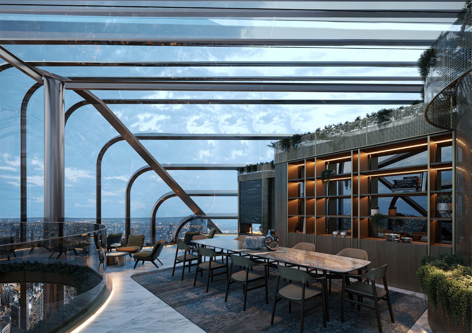 - Sky Crown Residences (tầng 50-70): Căn hộ siêu sang với thiết kế tinh giản, linh hoạt, ban công đa năng và lò sưởi trung tâm.
