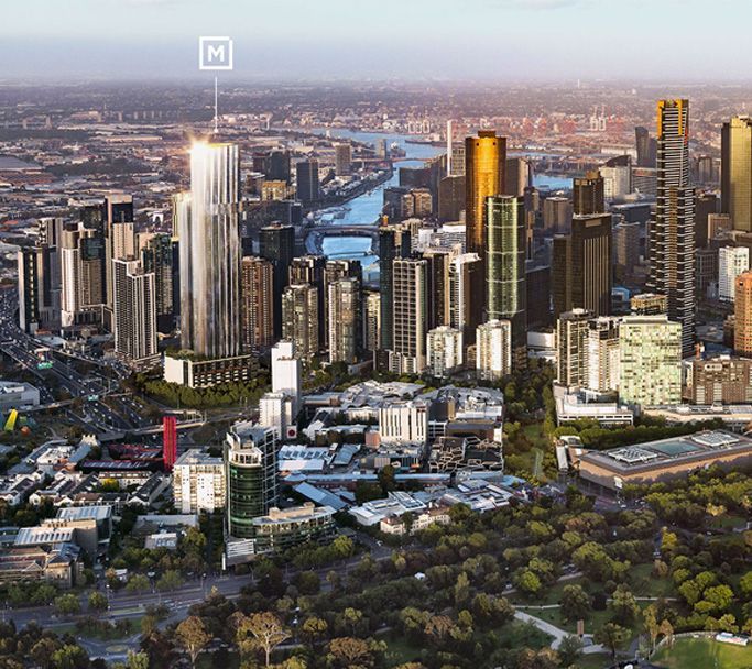 Vị trí "vàng", nổi bật độc đáo giữa trời Melbourne với chiều cao 246m (78 tâng) cùng thiết kế mềm mại lượn sóng, kề bên các trường đại học RMIT, Melbourne, Victoria