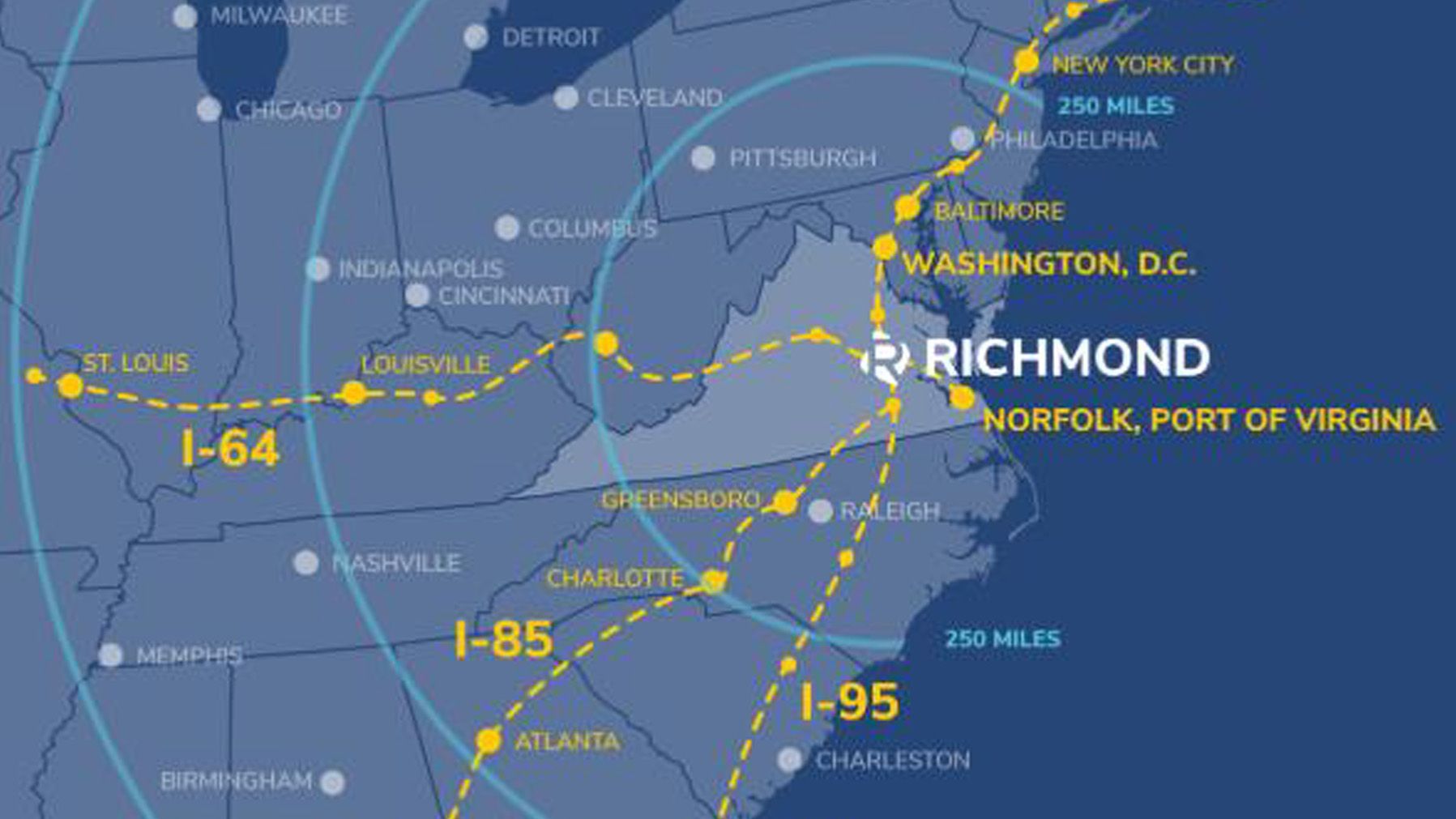 - 95 dặm từ Cảng Virginia, cảng lớn thứ 6 tại Hoa Kỳ