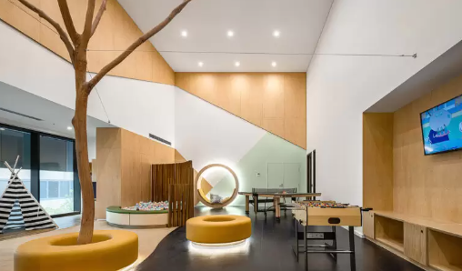 Khu vực cho trẻ em: Sân chơi trong nhà an toàn, đầy sáng tạo dành riêng cho trẻ nhỏ. Khu vực có mức trần cao gấp đôi, không gian mở rộng rãi và được cấu hình lại để tổ chức các sự kiện xã hội của trẻ em.
